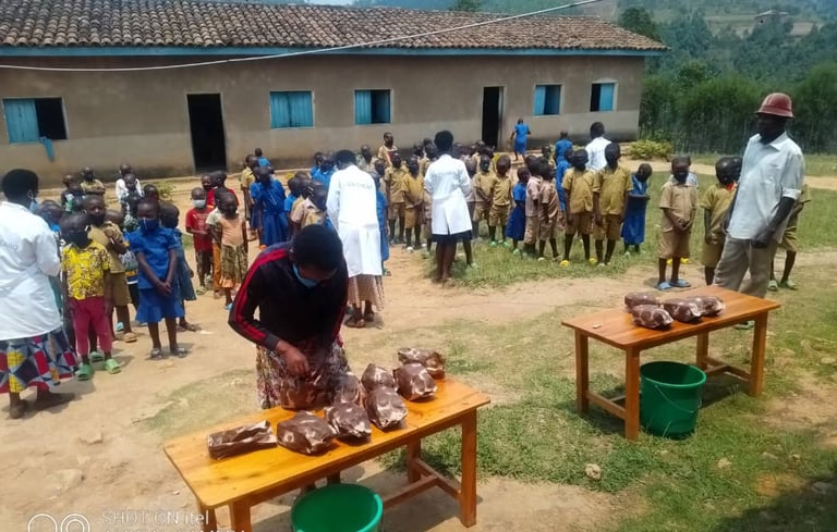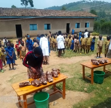 Une part des récoltes (fruits, bananes, haricots/patates selon saison) alimente la cantine de l’école de Cyicaro. En parallèle, nous organisons des dons de produits animaux aux familles en difficulté du village : lait (déjà distribué chaque semaine selon disponibilité), œufs et, à terme, miel issu de nos ruches.
