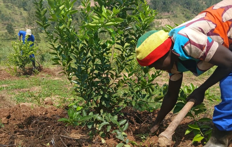 À Cyicaro, l’agro-élevage n’est pas qu’une production : c’est un levier de développement local. Nous créons des emplois, formons aux bonnes pratiques (compost, paillage, anti-érosion, hygiène post-récolte) et soutenons l’alimentation des élèves de l’école voisine grâce à une part des récoltes. Cet engagement s’inscrit dans les objectifs sociaux du projet : former et sensibiliser, créer de l’emploi, répondre aux besoins du marché local et encourager l’épargne et l’investissement dans la communauté.