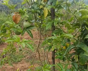 D’ici là, nous renforçons la conduite du verger : taille légère pour aérer le houppier, fertilisation organique (complétée si besoin par un apport NPK), paillage pour conserver l’humidité, rigoles anti-érosion sur les pentes et suivi sanitaire régulier (mineuse, cochenilles, HLB/greening) grâce à l’hygiène des parcelles et à la taille d’éclaircie.