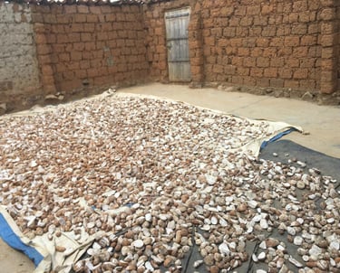 Semences adaptées, petit matériel (sarclage/tri), filets/brise-vent légers, zone d’ombrage/stockage pour le post-récolte, et suivi (petits registres). En échange : traçabilité, visites terrain et rapports courts (surfaces, kg récoltés, dons à la cantine, biomasse vers le compost).