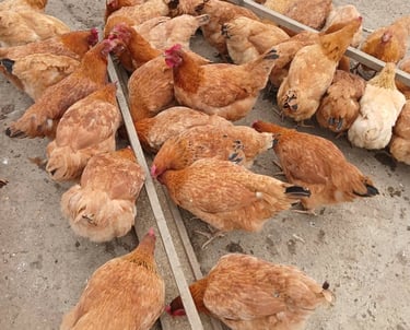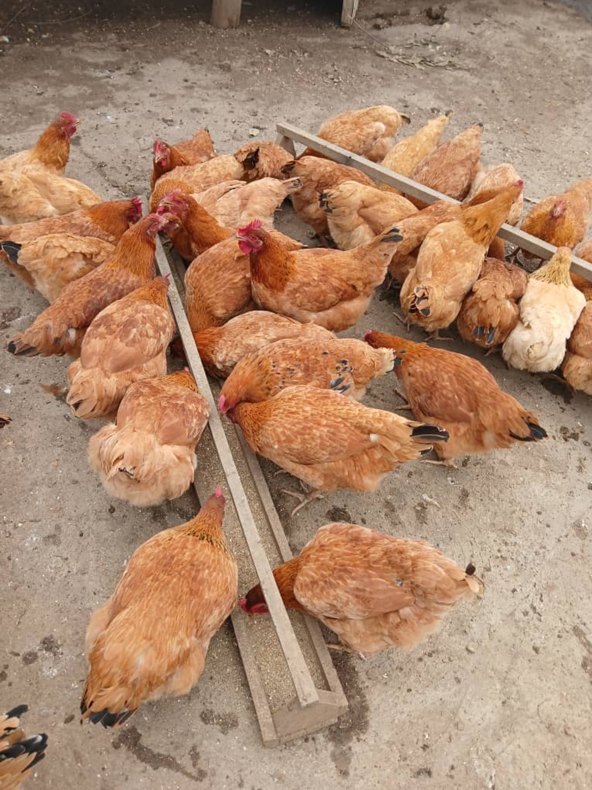 Rôle : les fientes améliorent la qualité du compost (riches en azote). Les ventes d’œufs et de poules réforment contribuent à financer l’aliment et une partie des salaires des permanents.