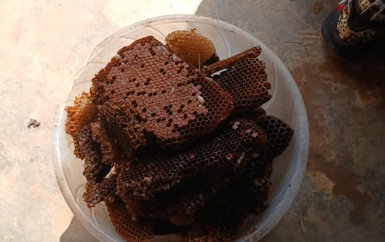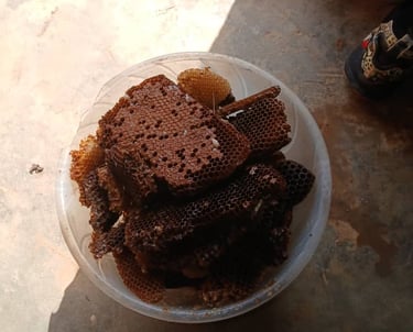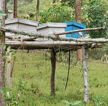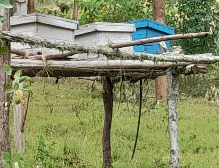 Nos ruches améliorent la pollinisation des cultures (macadamia, agrumes, fruits de la passion, mangue, bananes) et augmentent la nouaison (plus de fleurs fécondées = plus de fruits bien formés). L’apiculture apporte aussi une diversification de revenus (miel, cire) et renforce la biodiversité autour de la ferme.